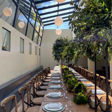 Espacios integrados al jardín para eventos únicos o como el complemento perfecto a las instalaciones exteriores.